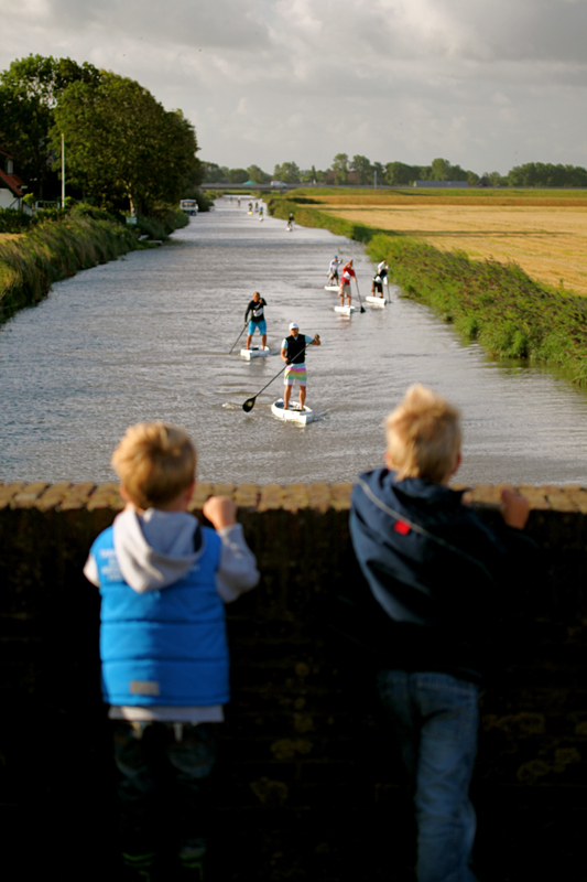 Anne-Marie Reichman ist schon seit jungen Jahren eine begeisterte Wassersportlerin und verfolgte schon früh eine Karriere im Windsurfsport. Als sie dann alt genug war um an der 11 City Tour als Eisläuferin teil zu nehmen ist sie jedoch so vorgeschritten in ihrer Windsurfkarriere, dass sie den Traum der 220km vertagen musste. Anne-Marie wurde eine erfolgreiche Profi Windsurferin im internationalen Weltcup, vergas ihr Kindheitstraum jedoch nie ganz. Vor einigen Jahren startete sie den Versuch die Strecke mit dem Windsurfer abzufahren, musste jedoch 20km vor dem Ziel wegen Windproblemen abbrechen. Mit dem aufkommen von Stand Up Paddling, ihrer Begeisterung für den Sport und die 11 City Tour kehrte sie in 2008 wieder nach Fryslan zurück um die 220km mit dem Stand Up Brett zu paddeln. „ Stand Up Paddling war in Holland in 2008 kaum bekannt und als ich auf meinem Brett durch die holländische Landschaft paddelte erweckte ich grosses Interesse bei der Lokalbevölkerung,“ erzählt uns Anne-Marie. Sie beendete die Strecke von 220km auf ihrem Stand Up Paddel Brett und erfüllte sich so einen langjährigen Traum. Dieser Moment war dann auch als der Funke übersprang und Anne-Marie die Idee hatte die 11 City Tour auch für Stand Up Paddel begeisterte Athleten zugänglich zu machen.