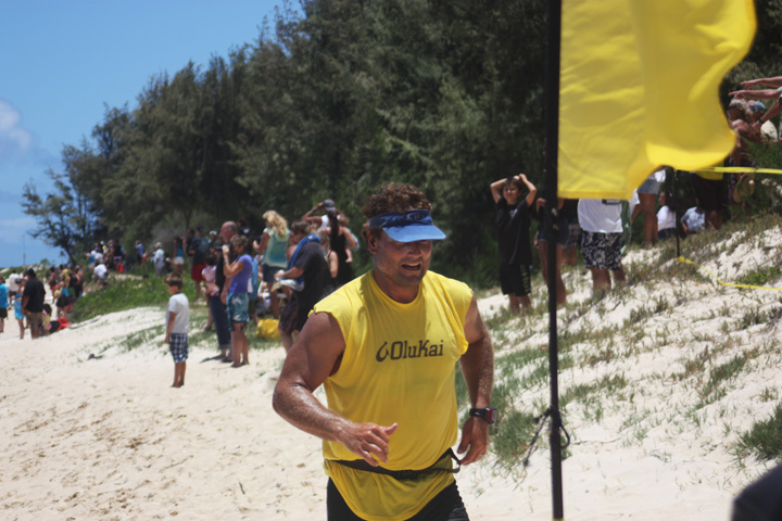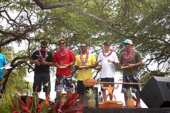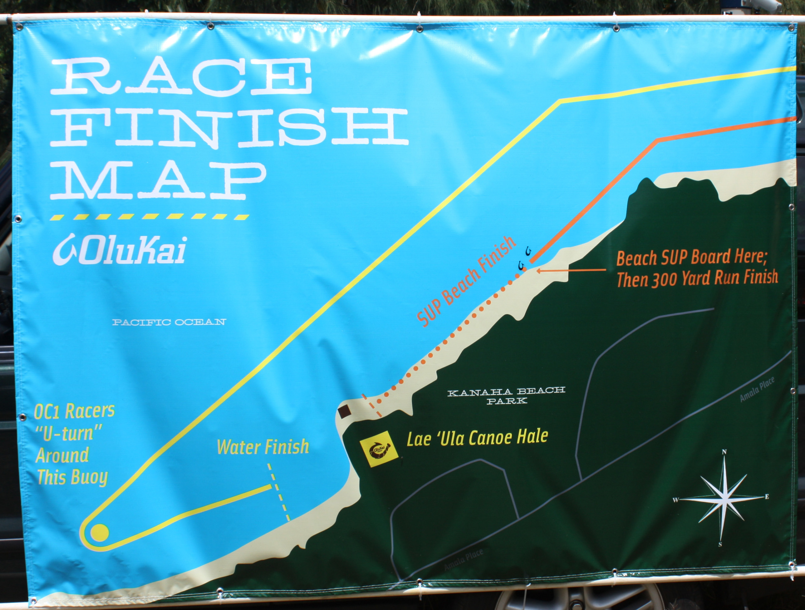 Von Beginn weg war es ein Rennen zwischen Livio Menelau, Danny Ching aus Kalifornien und Dave Kalama. Die Drei machten das Rennen untereinander aus während der Rest weiter hinten paddelte. Danny Ching, der OC1-Kanu Paddler führte das Rennen über die erste Hälfte, Menelau konnte seine Local-Kentnisse auspielen und erwischte einige gute „Glides“ die ihn nach vorne brachten. Die drei ersten Plätze wurden dann auch wie folgt vergeben: 1. Livio Menelau 75m weiter hinten Danny Ching als zweiter und Dave Kalama kam als dritter ans Ziel nur 50m hinter Ching.