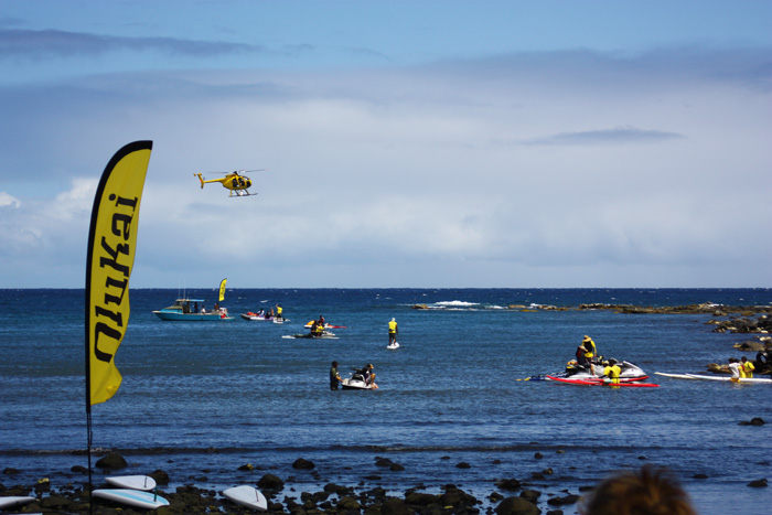 Der Tag war jedoch nicht nur geprägt vom Stand Up Paddel Rennen selber, sondern auch von Festlichkeiten rund um die Hawaiianische Kultur. Alle Fahrer waren zu einem traditionellen Luau eingeladen und es gab eine Hula Show. Olukai brachte das firmeneigene Segelkanu an den Strand, womit interessierte auf Testfahrten gehen konnten.