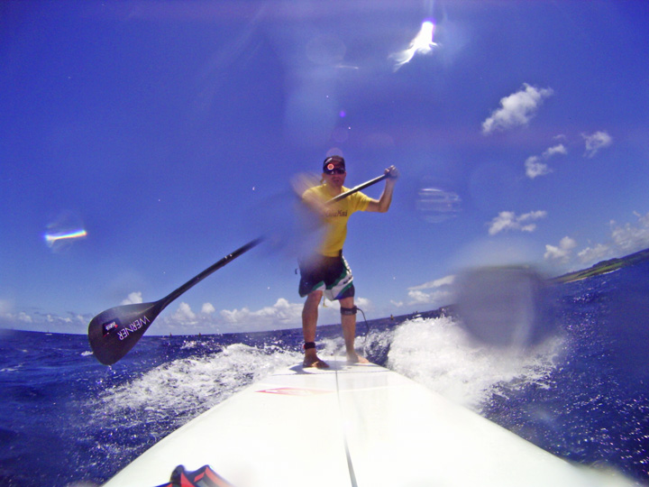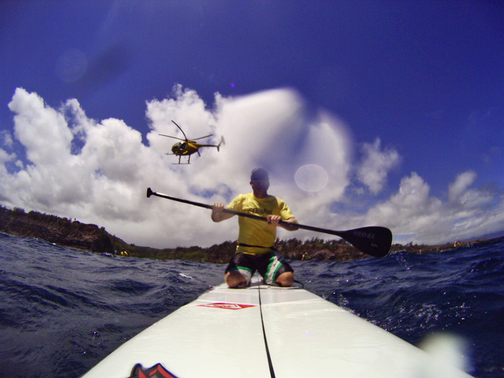 Die hawaiianische Paddelelite gab sich ein Stelldichein am Olukai Paddel Race 2010. Gepaddelt wurde über eine Strecke von 8 Meilen (12.8km) vom Maliko Tal zum Kanaha Beachpark. Der „Maliku Run“, wie er in der Szene genannt wird, ist eine der beliebtesten und besten Downwinderstrecken der Welt. Mit Rückenwinden von 15 – 20kt und einem Seegang von 2-3Fuss waren die Bedingungen am Start jedoch eher unter dem Schnitt. Erst gegen Ende der Rennstrecke im flacheren Wasser wurden die Wellen etwas steiler und der Wind frischte auf 25kt auf.