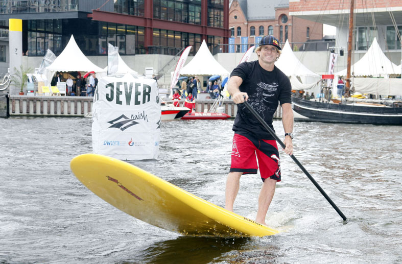 MN: Ja ich kann diese Zahl bestätigen es waren sogar mehr als 20’000 Gäste vor Ort. Die offizielle Angabe ist 27’000, wobei zu beachten ist, dass die Lokalität nicht nur wenig Laufpublikum hat, sondern zusätzlich gerade am Veranstaltungstag äußerst schlechtes Wetter war. Nichts desto trotz konnten wir die Leute zum JEVER SUP World Cup holen.