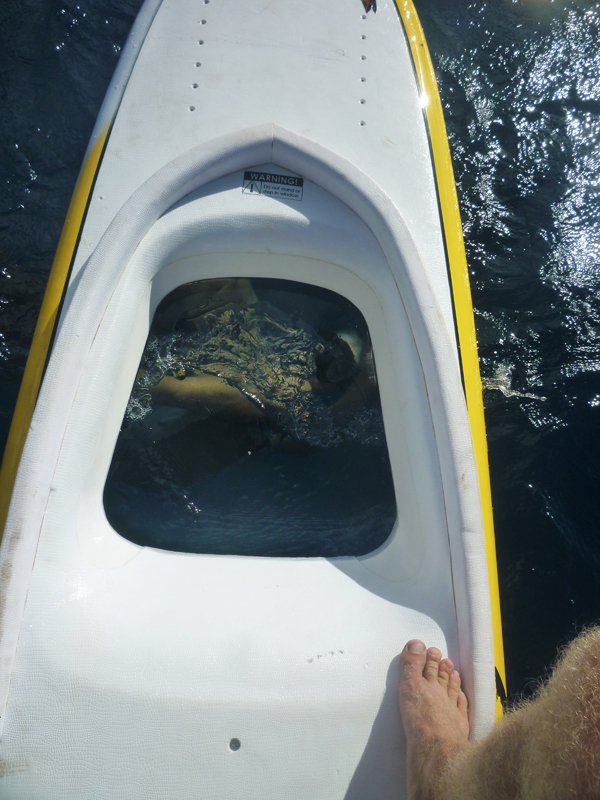 Kurz nach Mittagszeit fanden wir eine windgeschützte Bucht im Lee der Insel, ideal für eine SUP-Entdeckungstour. Stand Up Paddeln im Windschatten der steilen Felsküste Lana’is ist gerade zu ideal: Das Wasser ist nahezu spiegelglatt und die Landschaft ist einmalig. Ich hatte ein Naish Nalu 11’6“ mit Glassfenster dabei. Anfänglich hatte ich meine Zweifel, ob dieses Glasfenster wirklich etwas taugt – doch ich wurde positiv überrascht. Das Brett selber gleitet auch sehr gut durch das Wasser, ein ideales Familien Stand Up Paddel Brett für Entdeckungsreisen.