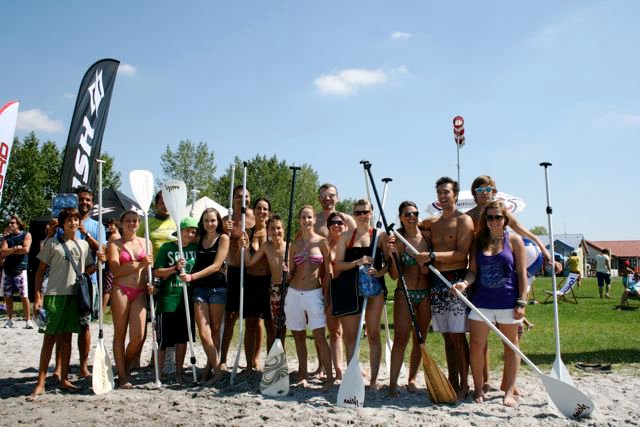 Im ersten Wettkampf paddelten Männer und Frauen, zusammen in einem Team, gegeneinander. Alle gaben ihr bestes und die erschöpften aber glücklichen Gewinner waren, Caroline und Alex. Nach dem Rennen chillten die Athleten in den Liegestühlen, stärkten sich an der eigens aufgestellten Tonis Martinskellerbar oder hielten ein kleines Schläfchen. Im zweiten Race dann ging es darum der schnellste Paddelnde Surfshop zu sein. Move Surfstore, Sport Schneider und Up Side Down (USD), sowie ein reines Damenteam vom Sport Schneider, waren heiß darauf sich zu matchen.