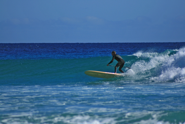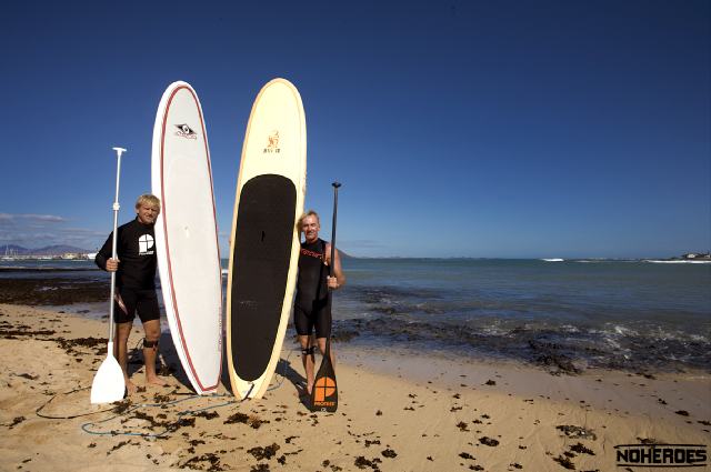 So wuchs die Rapa Nui Surfschool & Camps Jahr für Jahr. Es war alles nicht ganz einfach und wer denkt das eine Surfschule „easy going“ unter der Sonne Fuerteventuras ist, hat sich geirrt! Täglich 10-12 Stunden Arbeit war normal, aber es zahlt sich aus wenn man eine Vision vor Augen hat: Eine der besten Surfschulen in Europa zu betreiben. Mittlerweile ist unsere Basis und Camp in Costa Calma. Dort betreiben wir einen Surfshop mit intrigierter Boardriders Bar. Das SUP (damals wussten wir noch nicht, dass man es so nennt) entdeckten wir Ende 2007. Der Grund war, auf Fuerteventura gibt es viele unglaublich gute Außenriffe die mit einem herkömmlichen Surfboard nicht zu Surfen waren. Die Wellen liefen weit vor der Küste und so kamen wir auf die Idee mit einem Windsurfboard und Paddeln die Wellen zu erwischen. Es funktionierte, aber es war auch nicht das Gelbe vom Ei. Im Jahre 2008 reiste Daniel nach Frankreich und sah die ersten Paddle Boards. Er telefonierte gleich mit mir und erzählte mir von seiner Entdeckung. Bei seiner Rückkehr machten wir nicht lange rum und reisten zur Boot nach Düsseldorf. Von dort aus brachten wir unsere ersten SUP-Boards noch selber im Flugzeug auf die Insel. Mittlerweile wird SUP auf Fuerteventura immer populärer. Die ersten SUP-Festival und Contest im Racing finden statt. Beim SUP entdeckt man so viele neue Spots, wo keine Menschenseele ist und wo man ganz entspannt die Insel von einer anderen Perspektive sieht. Heute stehen in unserem Shop die neusten Boards von NSP, Bic und Tuflite unseren Kunden zur Verfügung und man kann sagen das wir die ersten auf Fuerteventura waren, die SUP-Surfen angeboten haben.