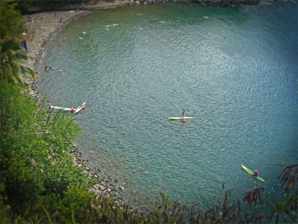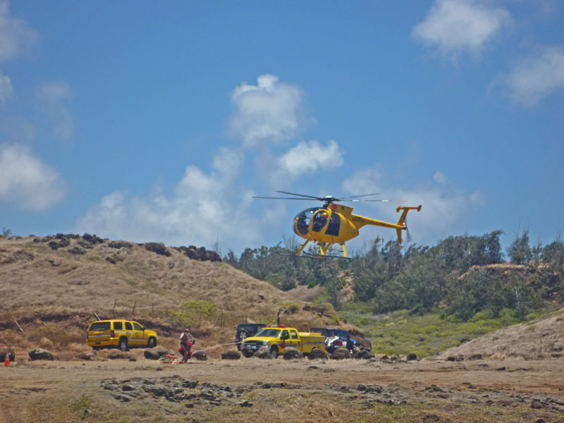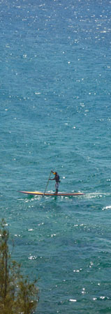 Während die Stand Up Paddler weit auf dem Meer draussen mit dem Wind gegen die Strömung paddelten, war am Ufer die örtliche Feuerwehr mit einer „Search and Rescue“ Aktion beschäftigt. Offenbar war ein Tourist an der steilen Klippe vor über 24 Stunden ins Wasser gestürzt und die Suchaktion war immer noch im Gange.