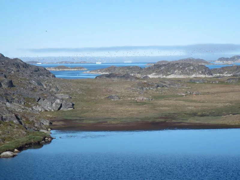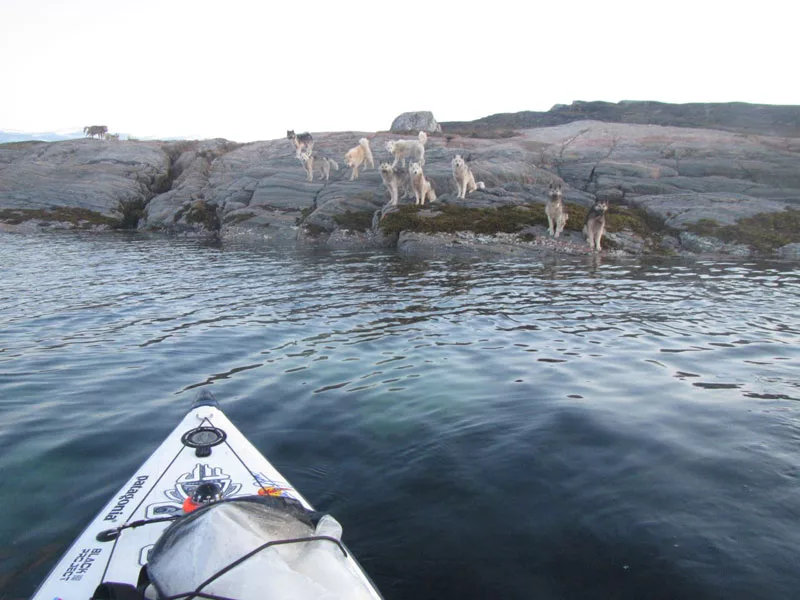 After almost 24 hours of paddling I could see my destination and I was getting closer to the island in front of Aasiaat. The wind died completely which made it a lot easier to spot the many whales and seals. The seals would curiously pop up their head high out of the water and look around to see who was coming their way, though quickly disappearing when they saw me.