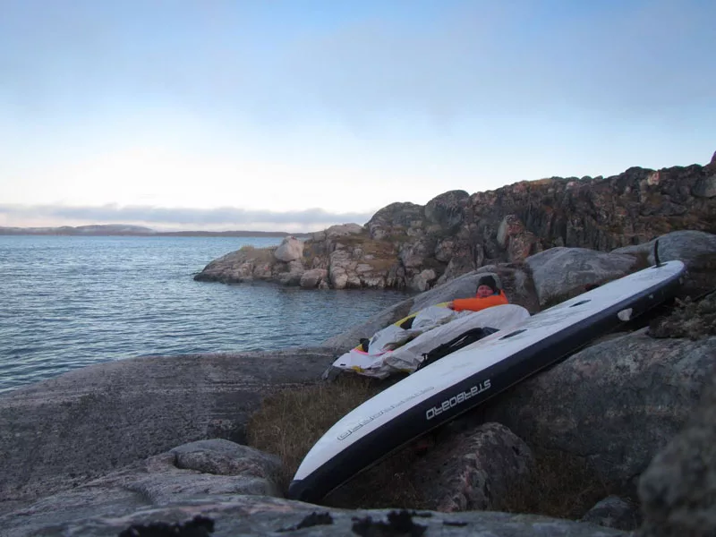 This should have been a crossing between Canada and Greenland. But in Canada, where I was supposed to leave was still a 15-mile layer of ice and with 4 low-pressure systems in the area the weather looked very risky. On top of that, after testing my board the last weeks, my speed of the inflatable board with 120llbs of water, food and gear wasn’t what I hoped for. It suddenly could be a 10-day adventure instead of a 5 day crossing, with water temperatures close to freezing. I decided that it was not worth risking my life. Life is too beautiful.