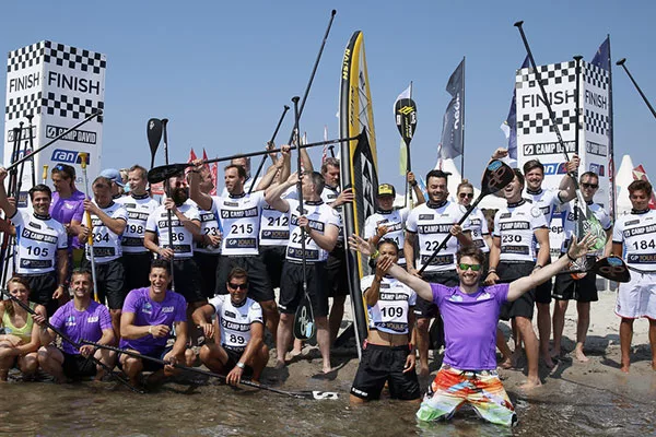 Schauspieler Dominic Boeer („Gute Zeiten, schlechte Zeiten“, „Soko Wismar“) führte sein Team, in dem unter anderem die Weltranglistendritte Lina Augatis aus Kanada stand, unter dem Jubel der Zuschauer zum Sieg. „Das Stand Up Paddling sieht von außen so leicht aus, ist aber unglaublich anstrengend. Ich konnte zum Schluss meine Beine nicht mehr bewegen, bin aber glücklich über diesen Sieg“, sagte der 35-Jährige. Das Preisgeld von 3000 Euro wird den Klinik Clowns gespendet.