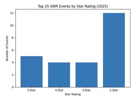 Die ĂŒbrigen Rennen in den Top 25 waren 2-Sterne-Events